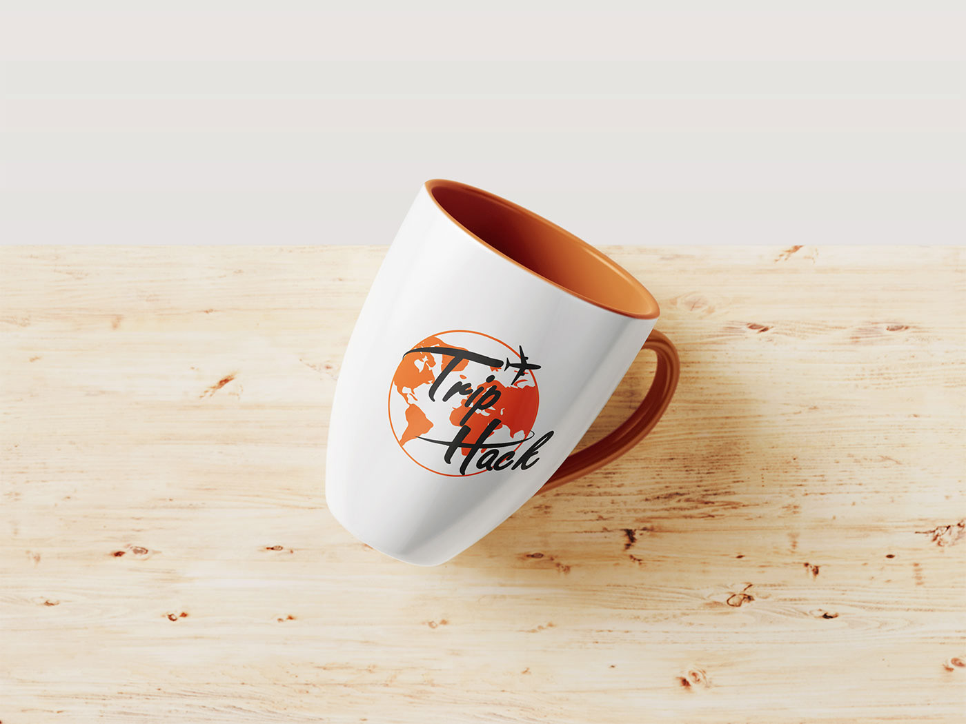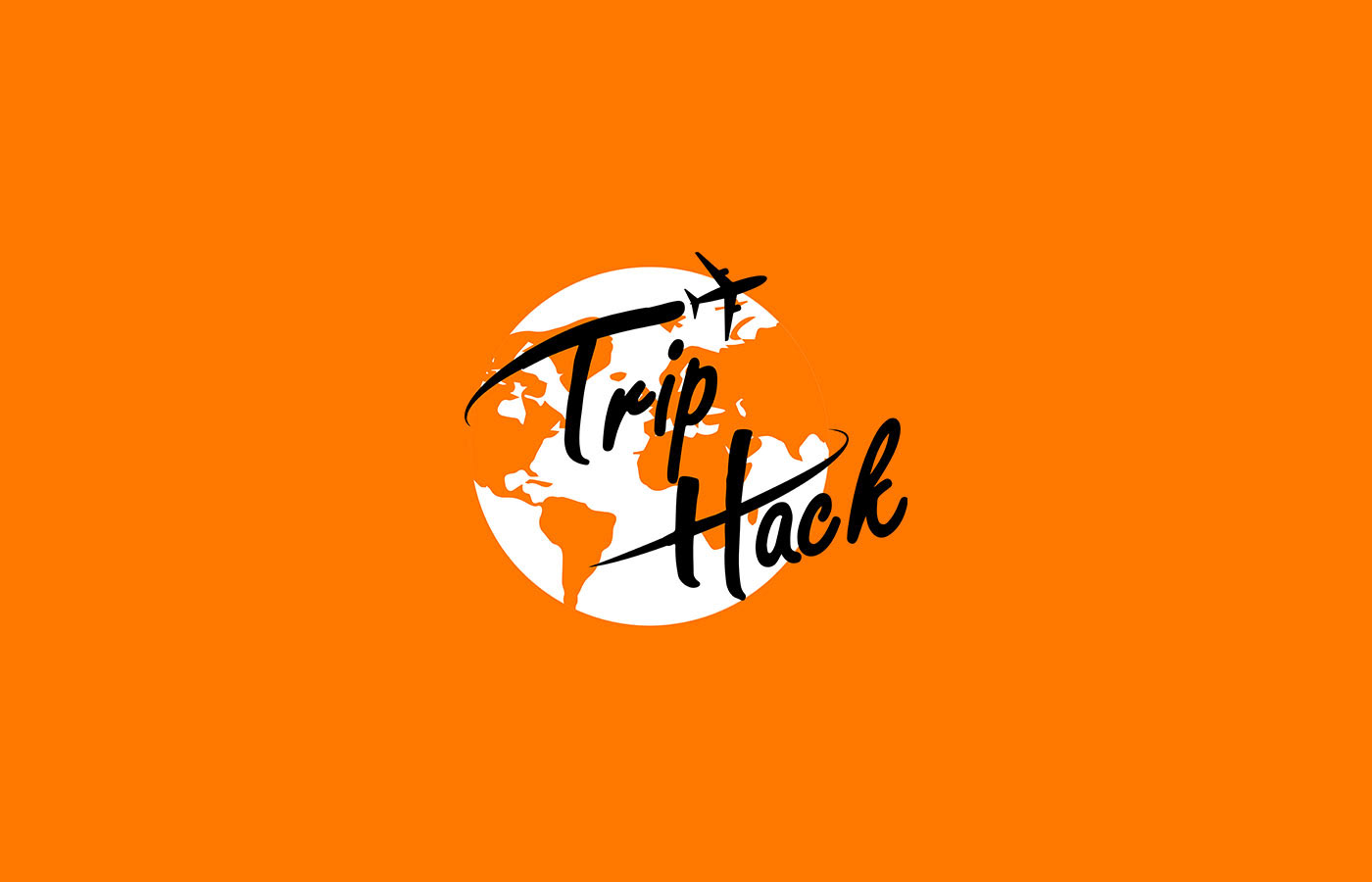 O logo Trip Hack tem uma parte tipográfica que utiliza as linhas do T e do H formando o traçado do caminho de um avião, enquanto o avião circula o planeta terra, um símbolo representando a viagem em si.